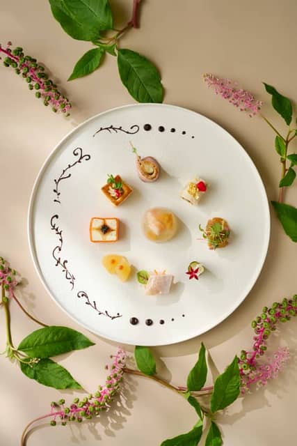 味はもちろん目でも楽しめる様に華やかな盛り付けでゲストを魅了。箸で食せる工夫も。