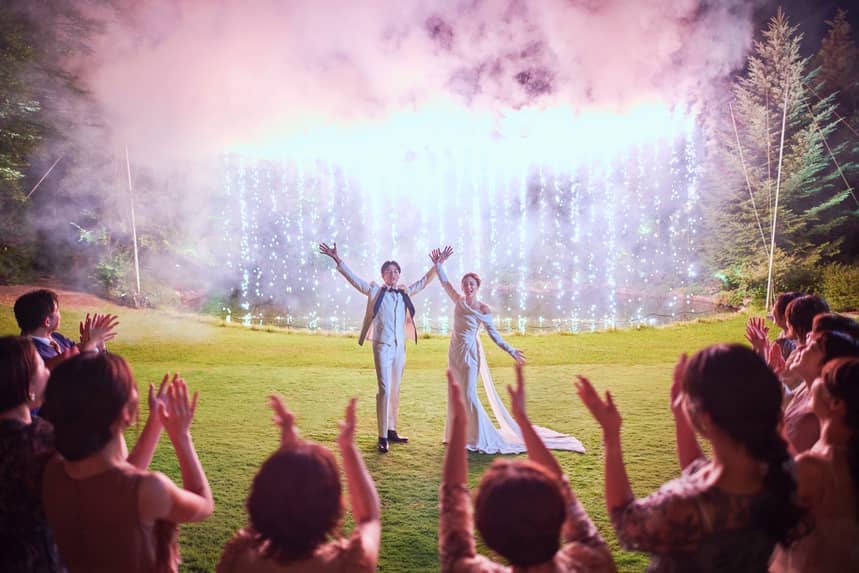 幻想的な非日常空間とドラマチックな演出でおもてなしを。特別な一日のクライマックスを彩る花火演出。おふたりとゲストの心に深く刻まれる感動的なシーンに。